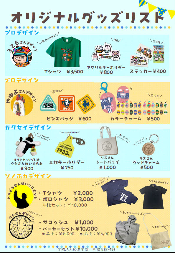 酪農学園創立100周年記念寄付事業で制作しているオリジナルグッズにつきまして