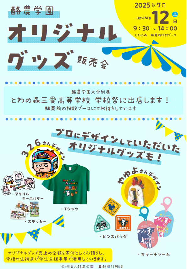 酪農学園大学附属とわの森三愛高等学校の学校祭(一般公開日)にて販売会を実施いたします。