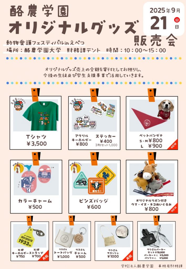9/21(日)『動物愛護フェスティバルinえべつ』(会場:酪農学園大学)にて販売会を実施いたします。