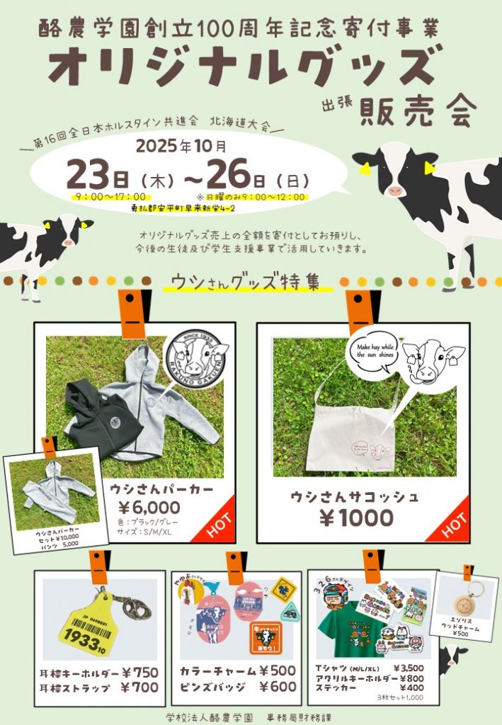 酪農学園創立100周年記念寄付事業で制作しているオリジナルグッズにつきまして