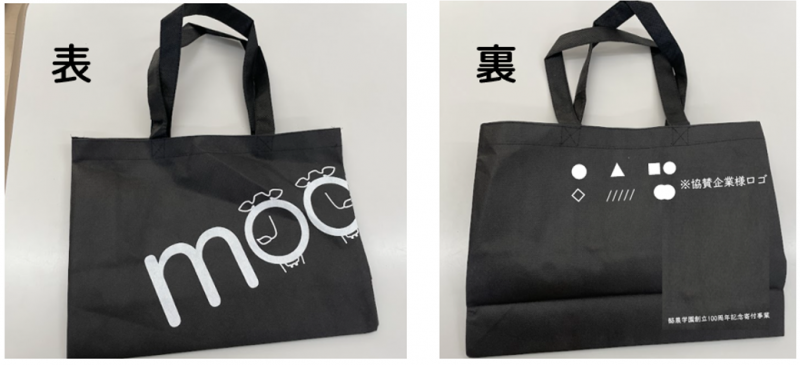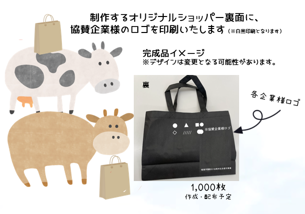協賛特典:制作するオリジナルショッパー(1,000枚作成予定)の裏面に、協賛企業様のロゴを印刷いたします(※白黒印刷となります。)