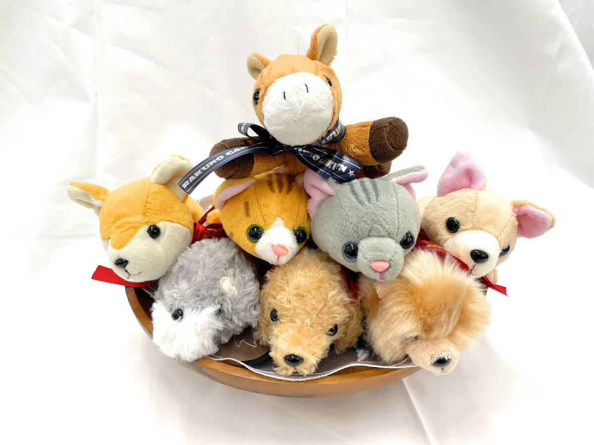 オリジナルリボン付き馬・犬・猫ぬいぐるみ